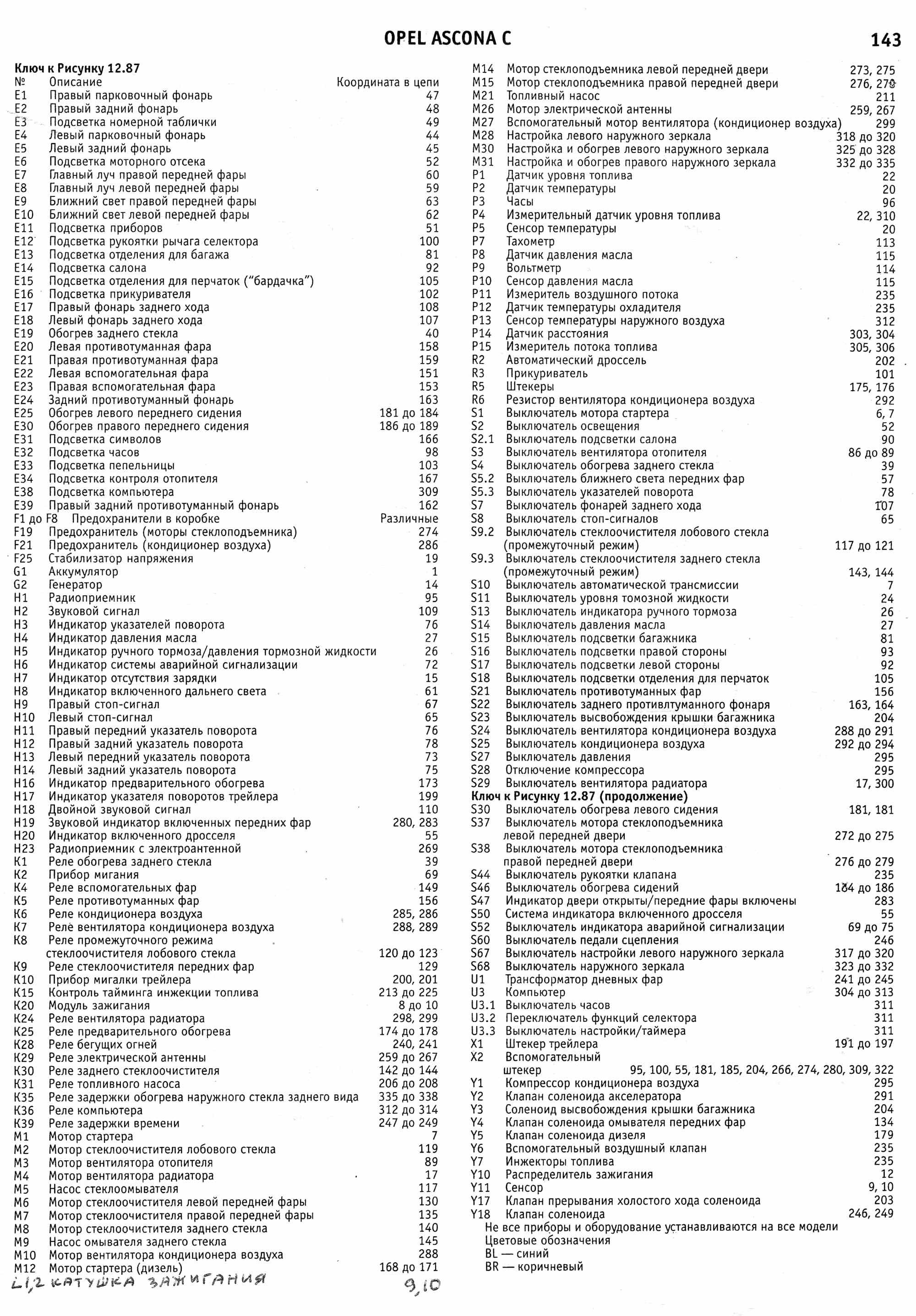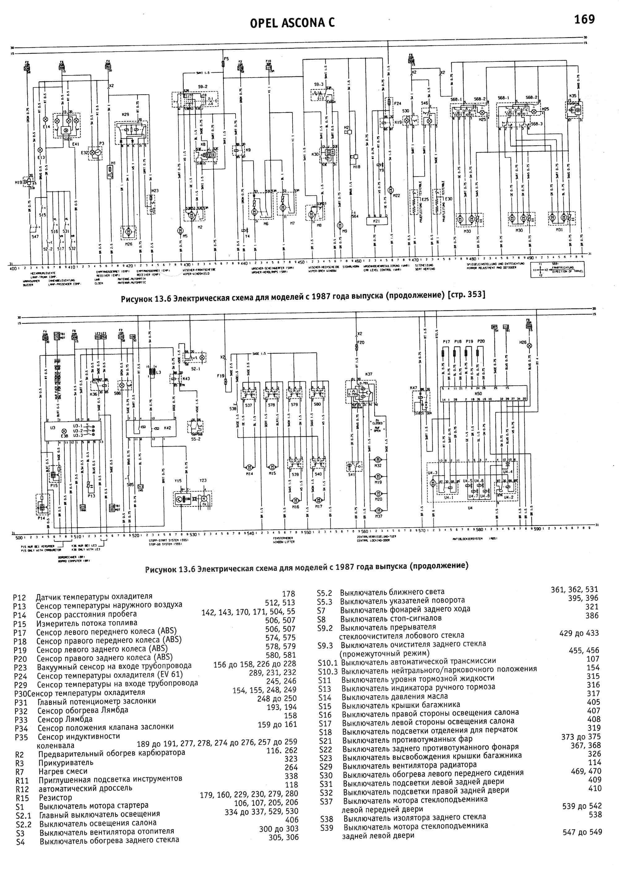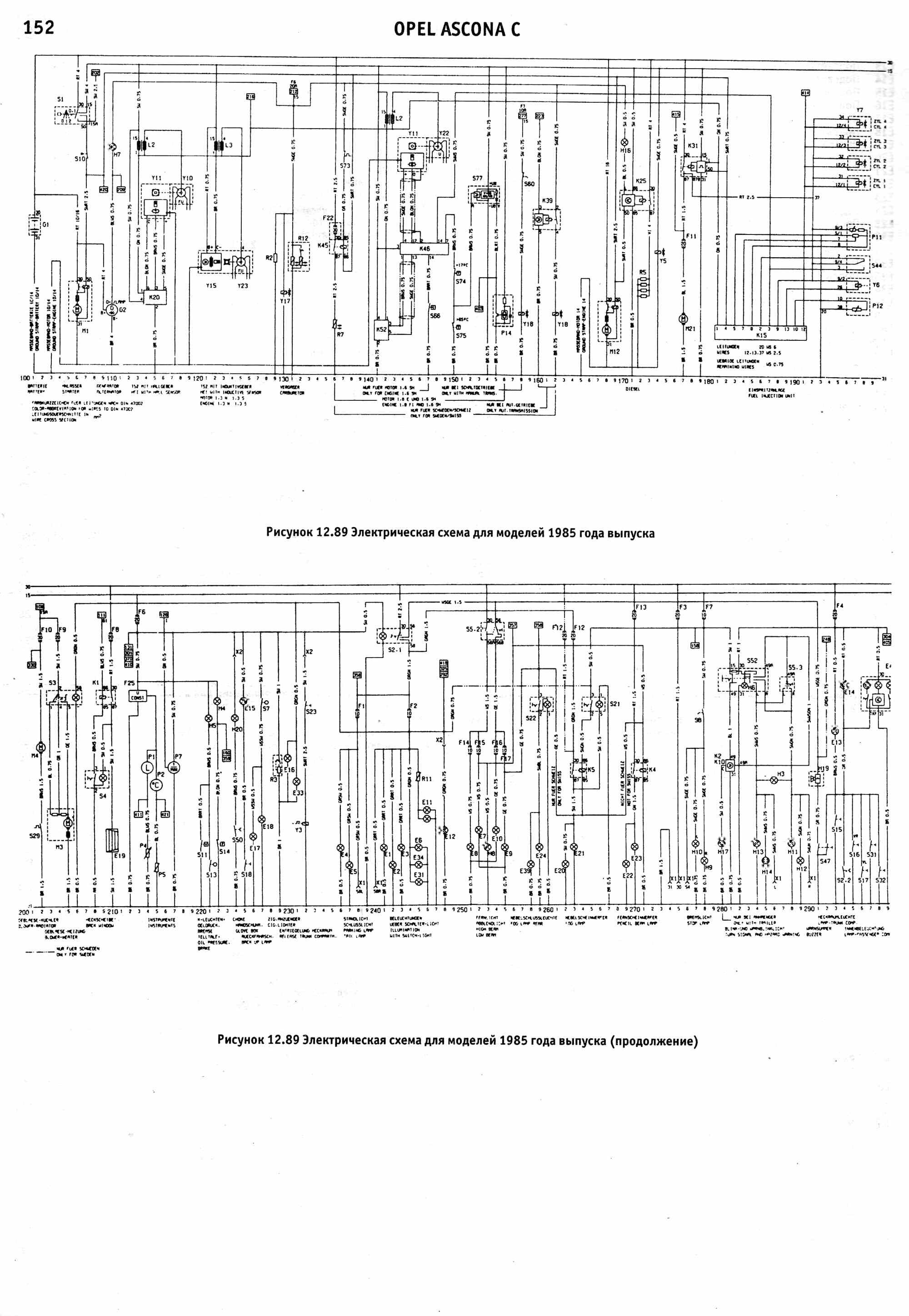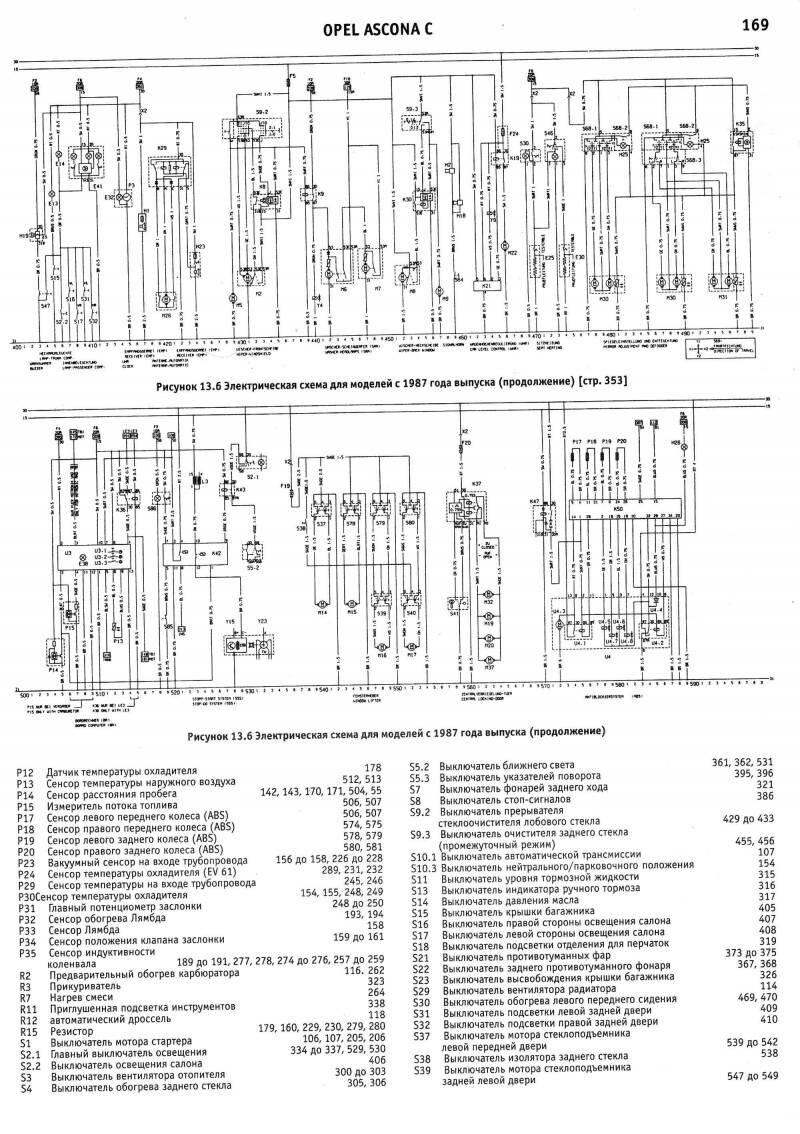 Схема электрическая Opel Ascona 1988