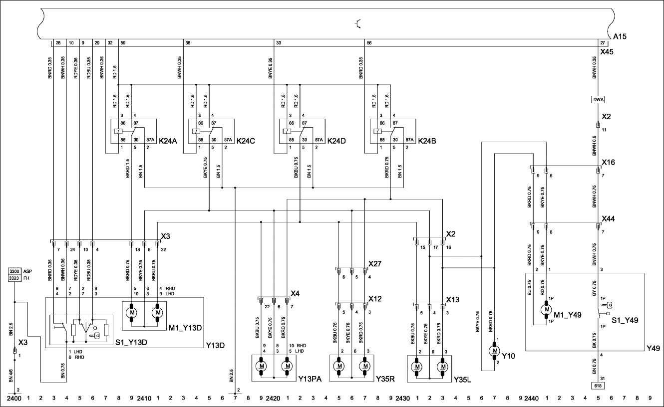 Y10 – электродвигатель – центральное запирание, лючок, топливозаправочный.