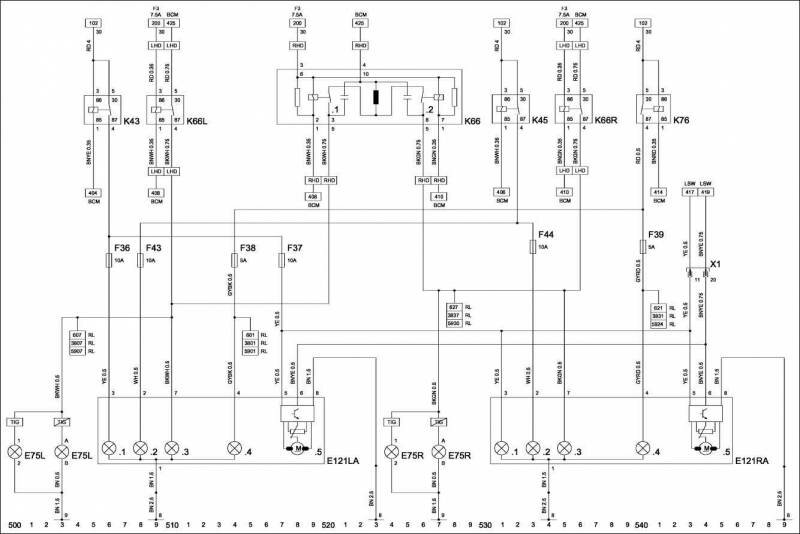 RL – задние фонари.