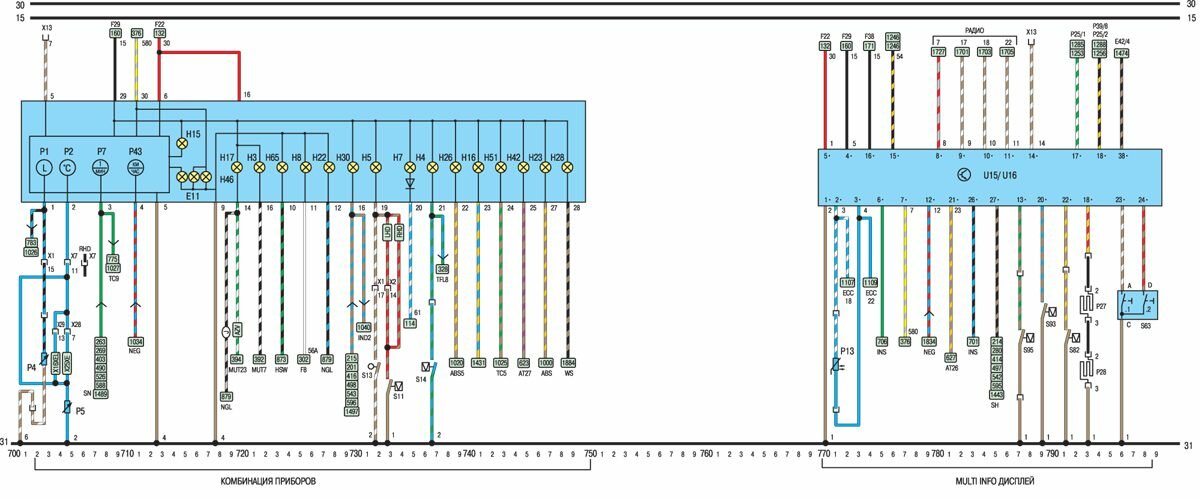 Сокращения на электросхемах, идентификация проводов, цветовой код