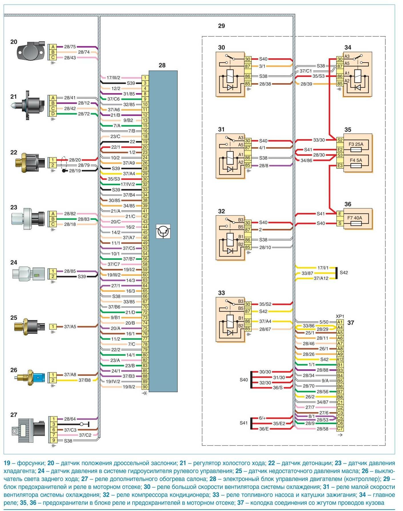 Схема соединений жгута проводов Renault Sandero двигателя 1,6 16V