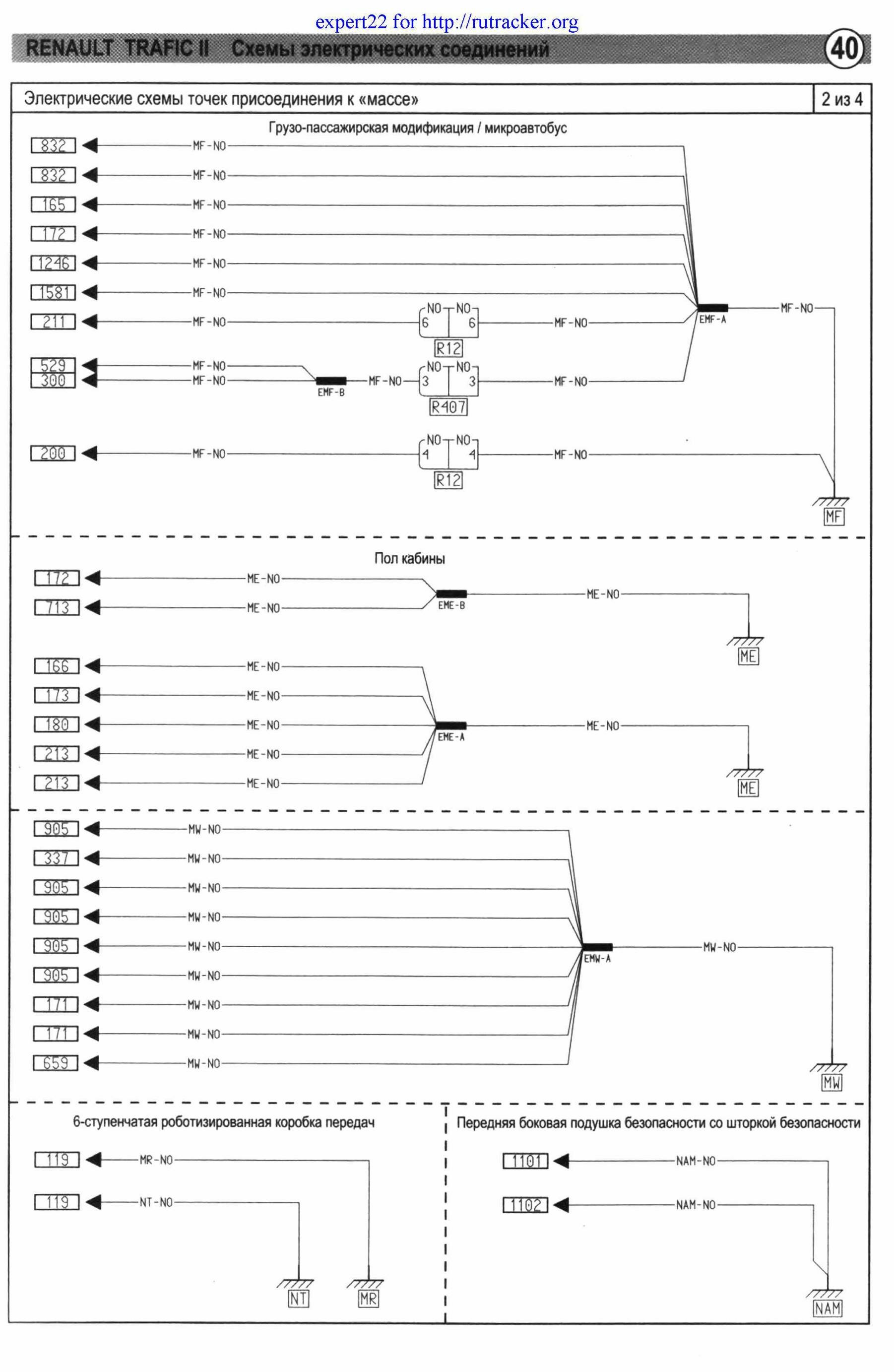 Электрические схемы точек подсоединения к массе