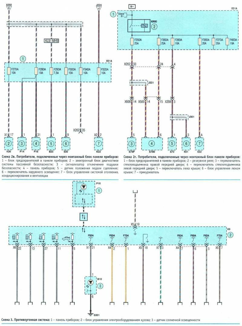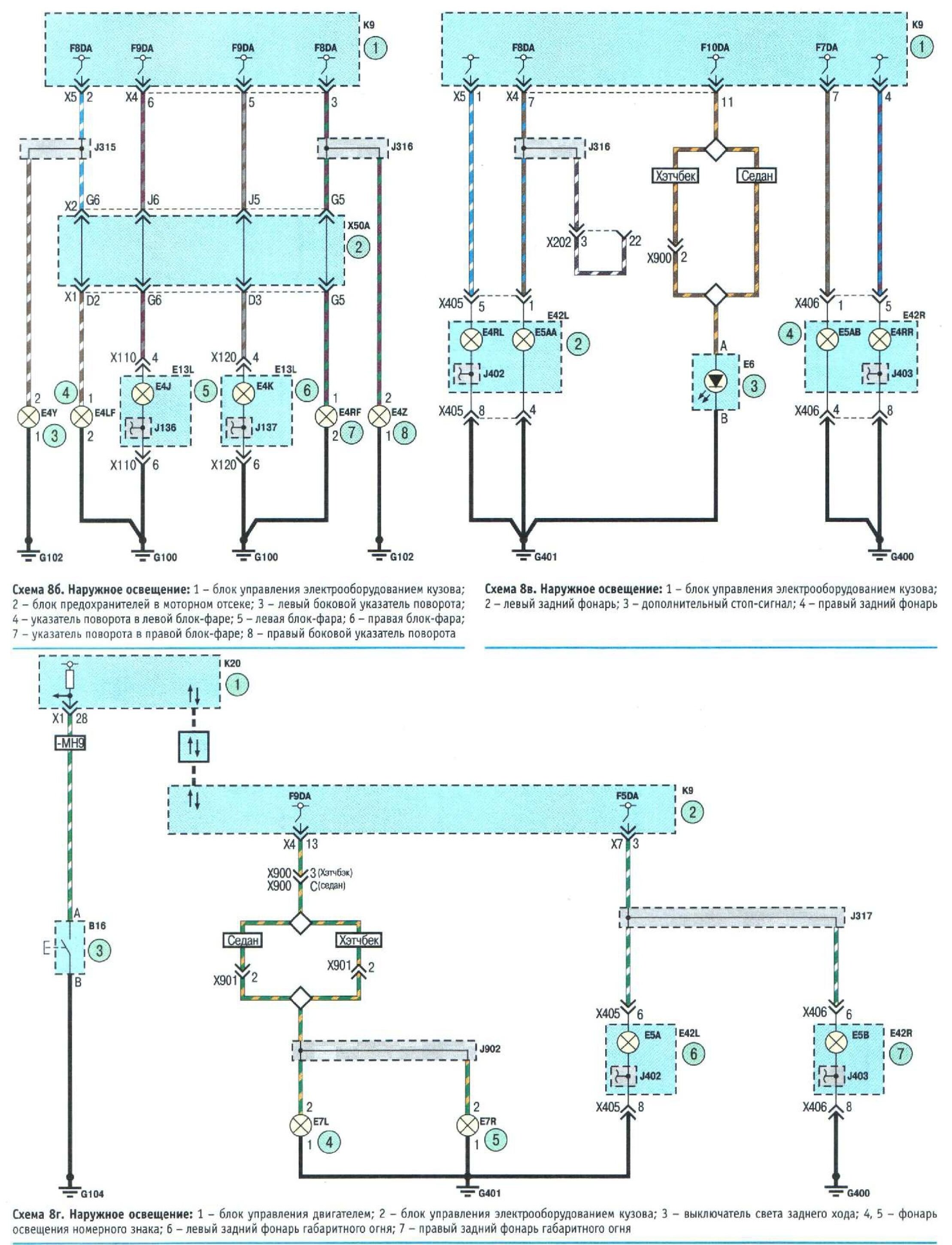Цветные схемы электрооборудования автомобиля Chevrolet Aveo с 2011 года, модификация T300. Показаны русскоязычные схемы и соединения электрической проводки узлов приборов автомобиля Шевроле Авео. Соединение приборов, соединения звукового сигнала, стеклоочиститель и омыватель ветрового стекла, соединения стеклоподъемников передних дверей, соединения комбинации приборов, антиблокировочная система тормозов, система управления двигателем и другие. Схемы для более старой версии Aveo смотрите здесь.