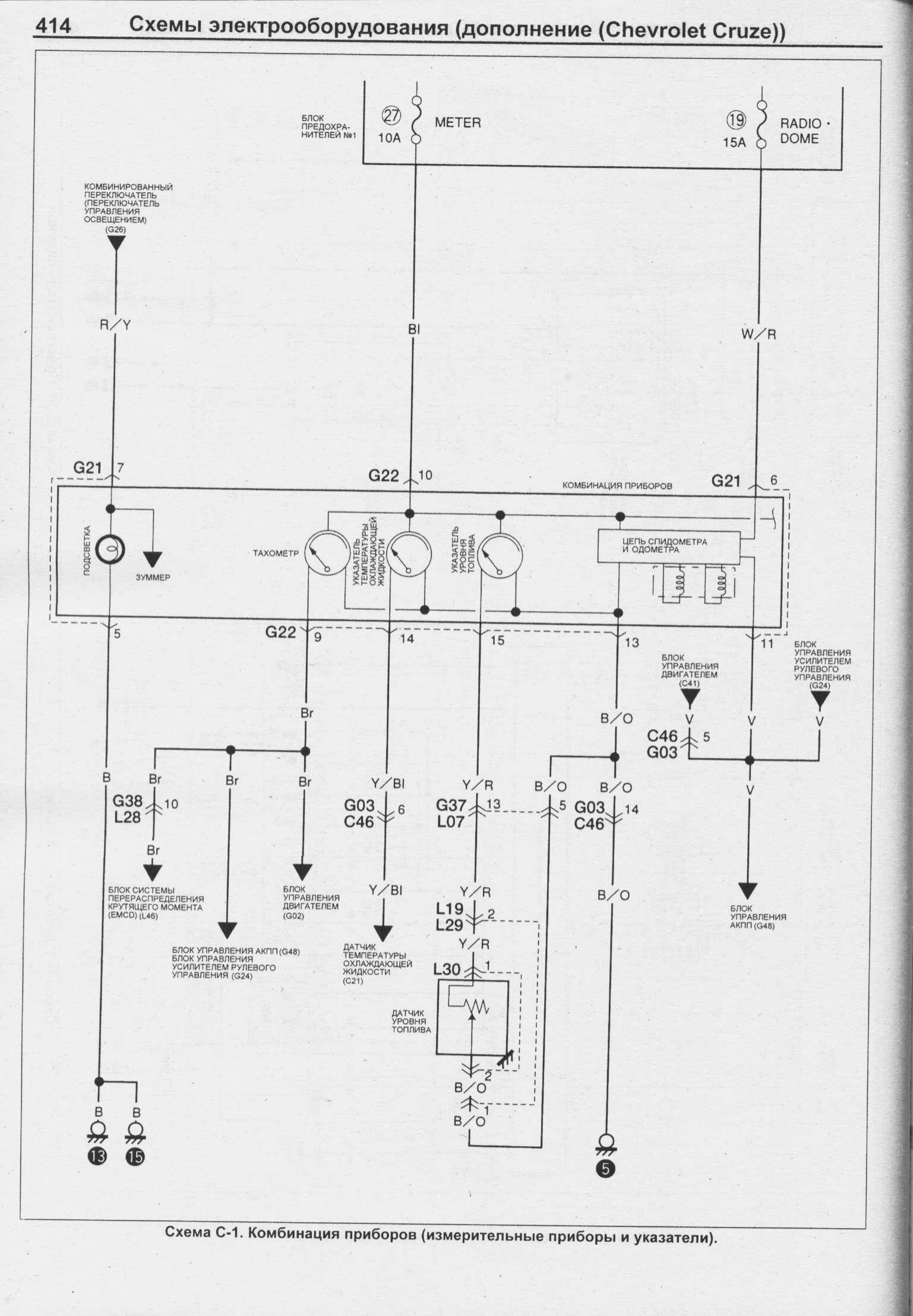 Электрическая схема блока комбинации приборов Шевроле Круз