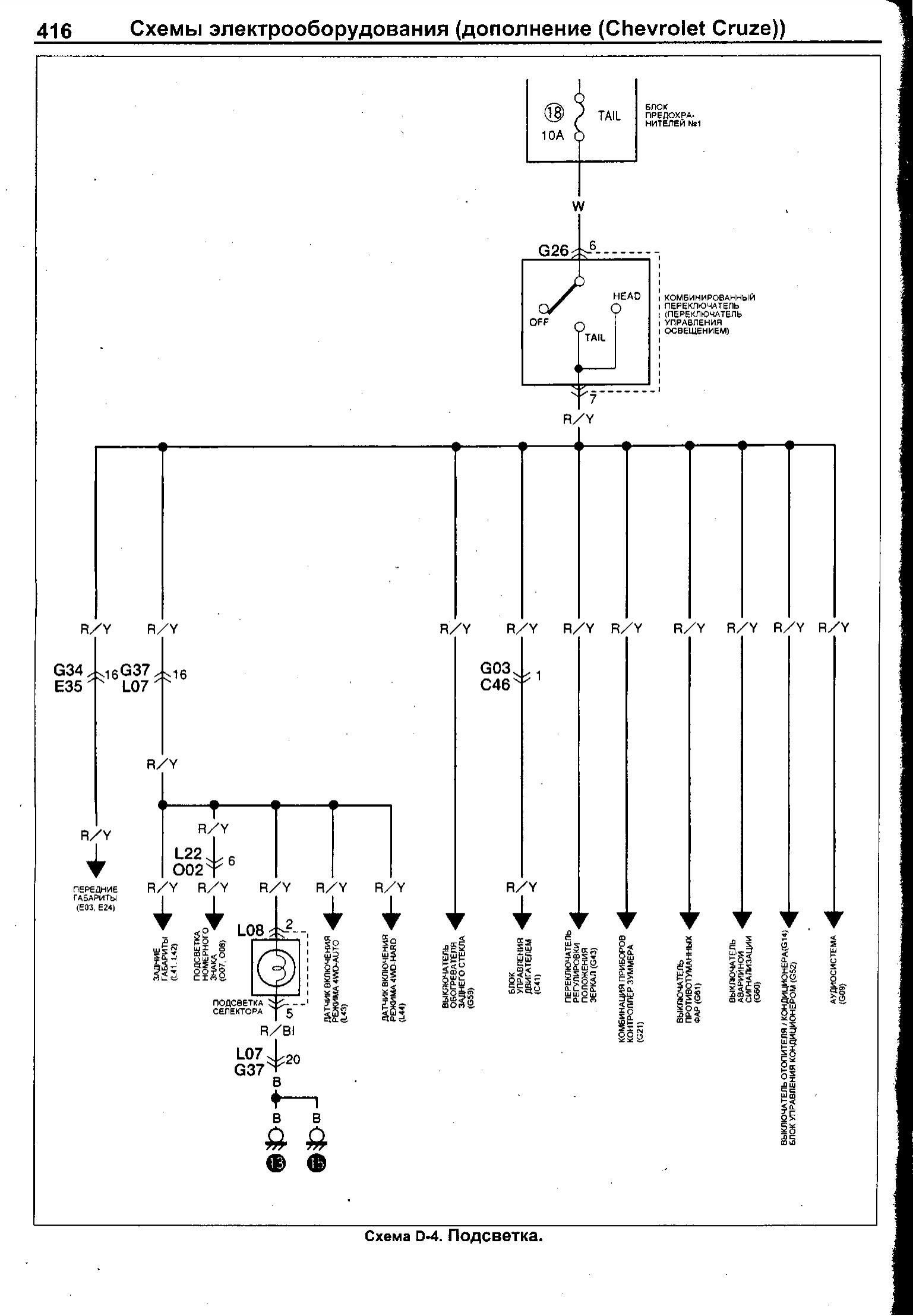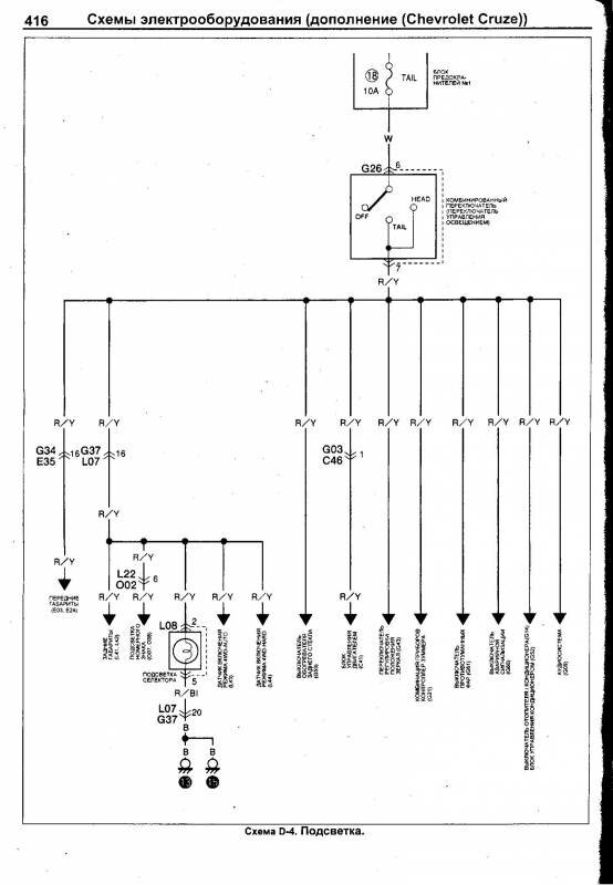 Схема подсветки Chevrolet Cruze