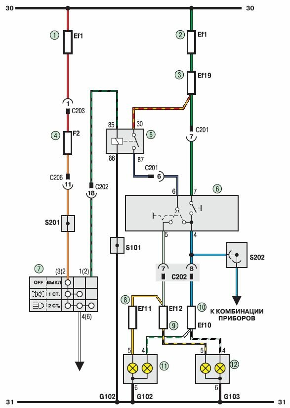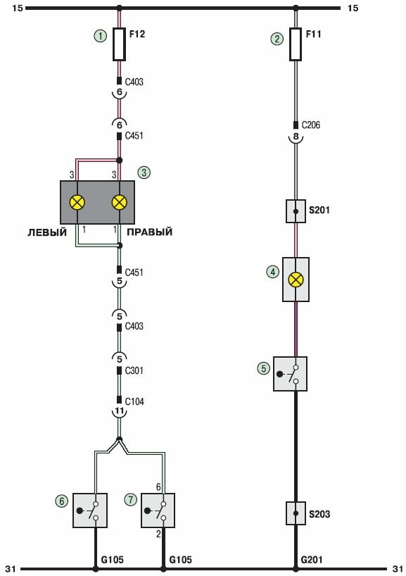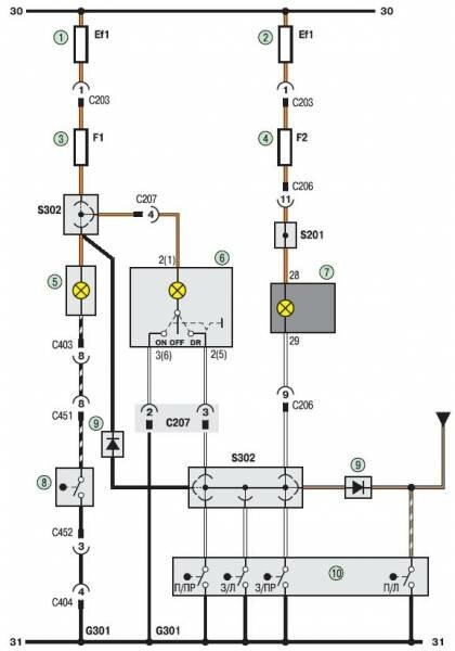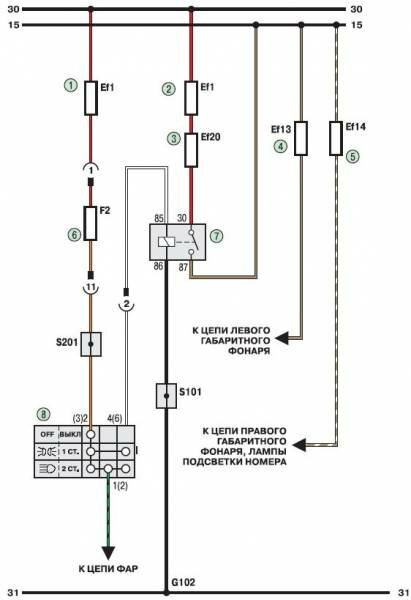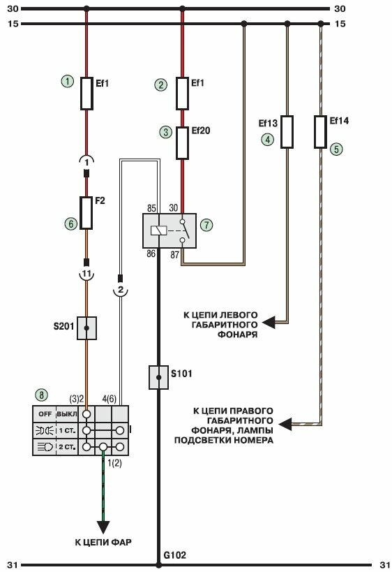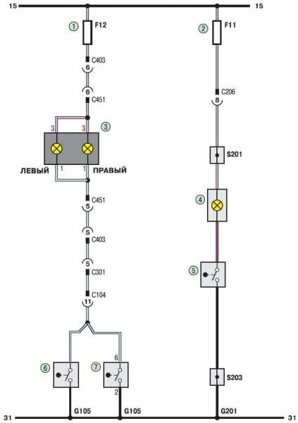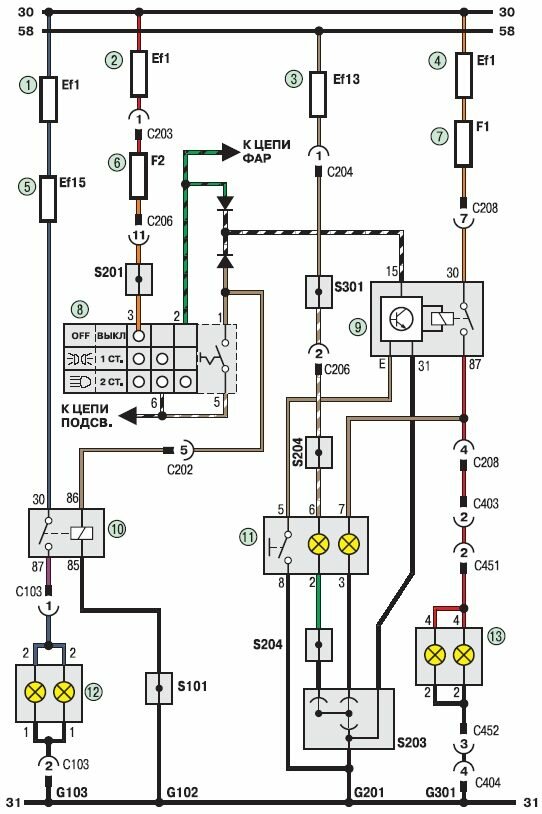 Электросхема электрической проводки и узлов приборов освещения автомобиля шевроле - ланос. Соединение приборов освещения: