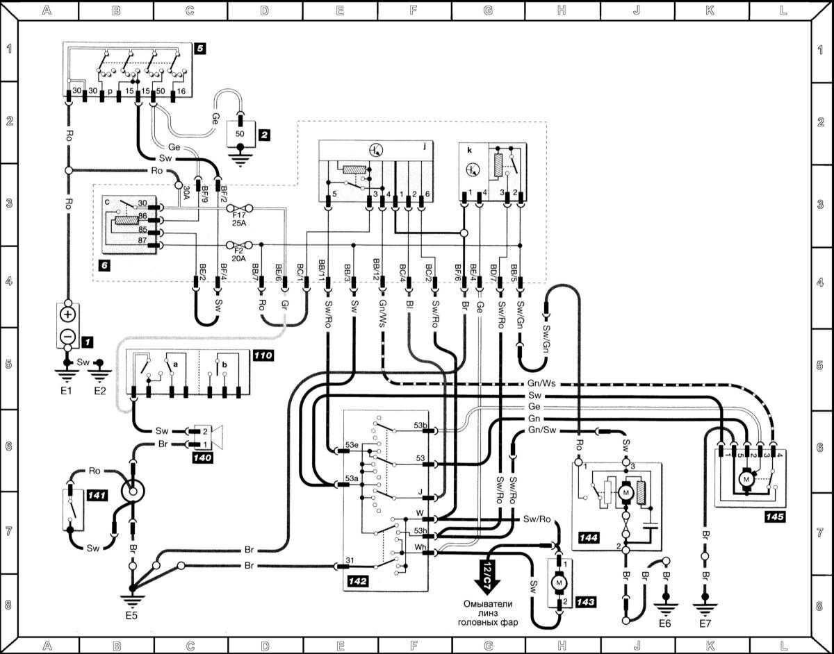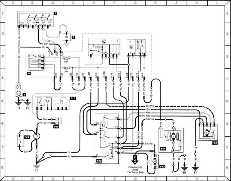 j = реле передних омывателей/очистителей