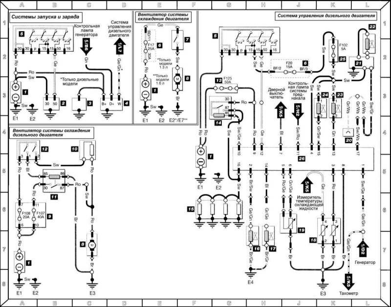 26 — Блок управления дизельного двигателя Обозначения цвета изоляции электропроводки