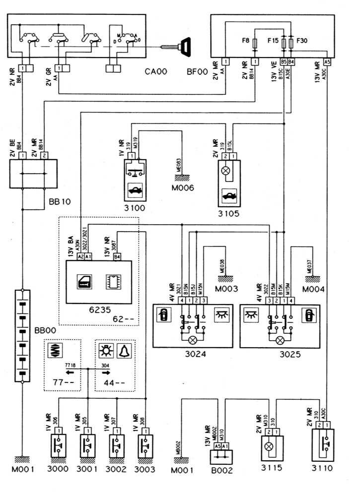 Сборник качественных электросхем, для электрооборудования Ситроен Ксантия. В данном разделе показаны схемы таких узлов, как Система контроля за температурой и уровнем охлаждающей жидкости, топлива, звуковой зуммер сигнализации и некоторые другие блоки авто. Увеличить схему можно кликнув на неё. Окончание альбома схем Ситроен Ксантия находится тут.