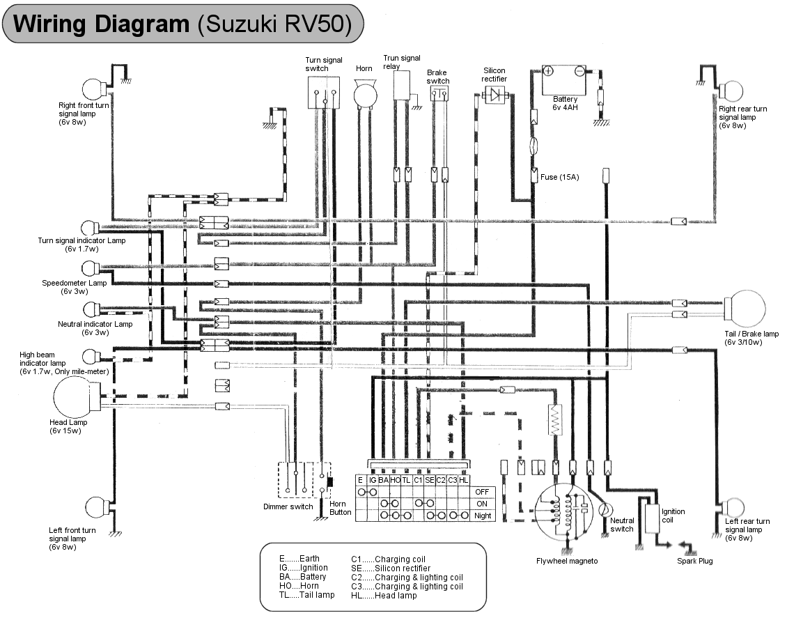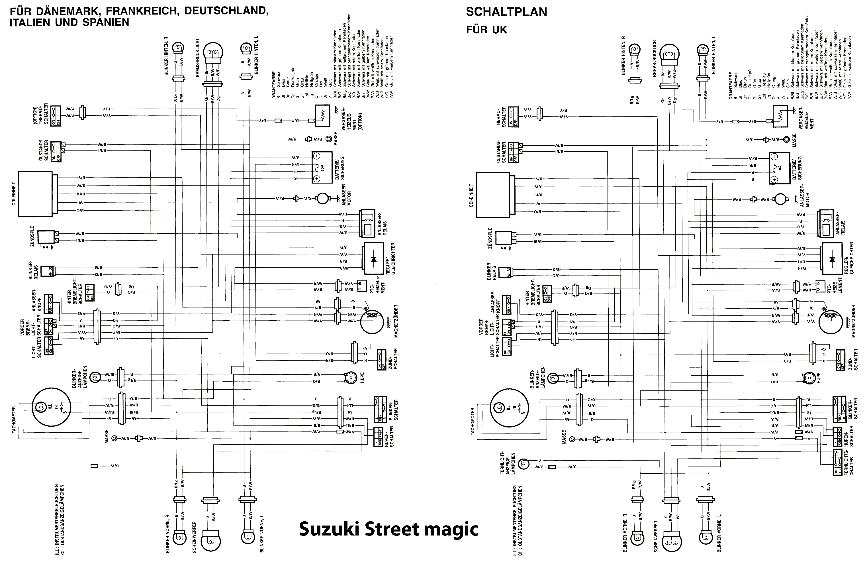 Сборник электросхем для скутеров фирмы сузуки. Представлены полные электрические схемы для скутеров сузуки Burgman, Suzuki Katana, Suzuki GN, Suzuki Street Magic и другие популярные модели. Для увеличения картинки - кликните на нужную схему.