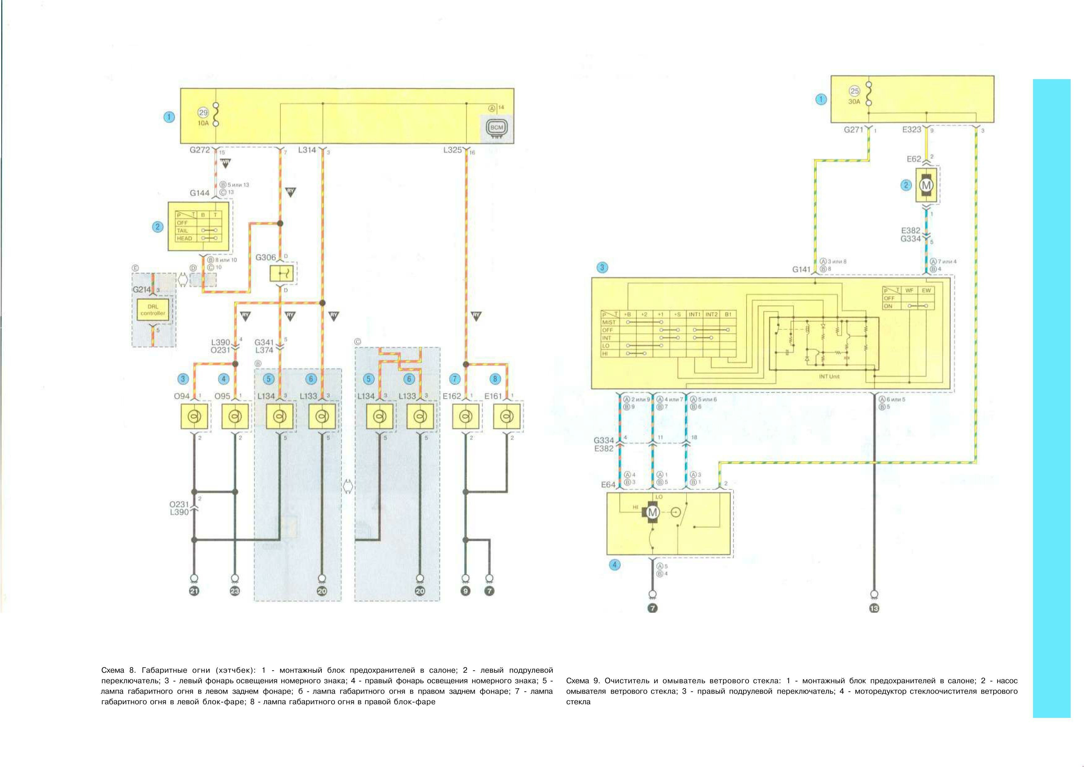 Габаритные огни, очиститель и омыватель ветрового стекла - электросхема на Сузуки