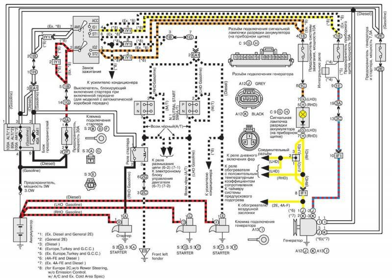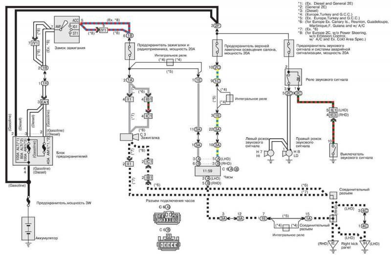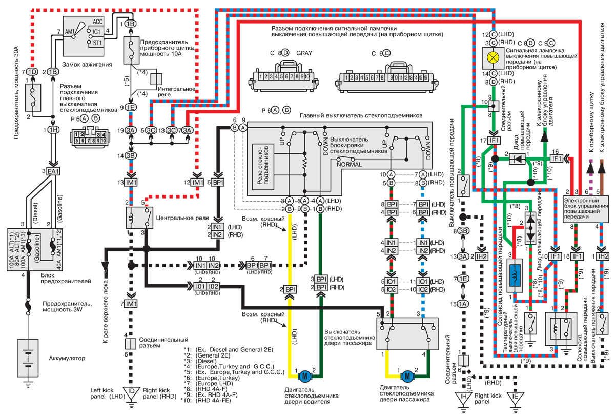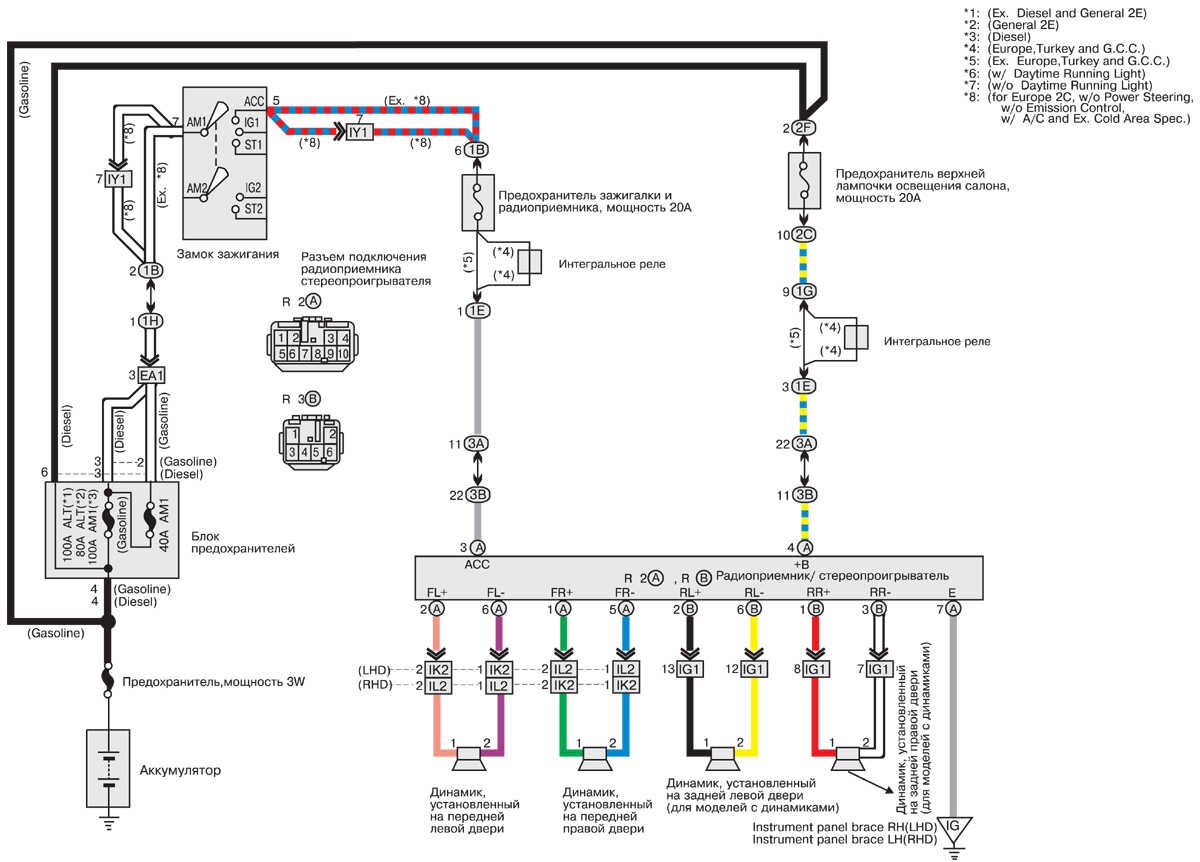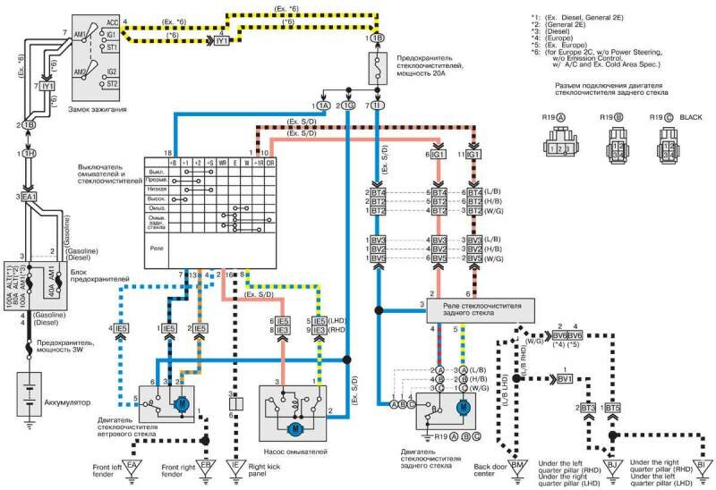 Бесплатные, цветные и качественные электросхемы автомобиля Toyota Corolla на русском языке. Представленна вторая часть, содержащая такие узлы: Электропривод зеркал заднего вида и верхнего люка, центральный замок, стеклоподъёмники, омыватели и стеклоочистители, вентилятор охлаждения радиатора и кондиционера Тойота Королла и другие. Первую часть сборника электросхем Toyota Corolla смотрите тут. Для увеличения достаточно кликнуть по схеме.