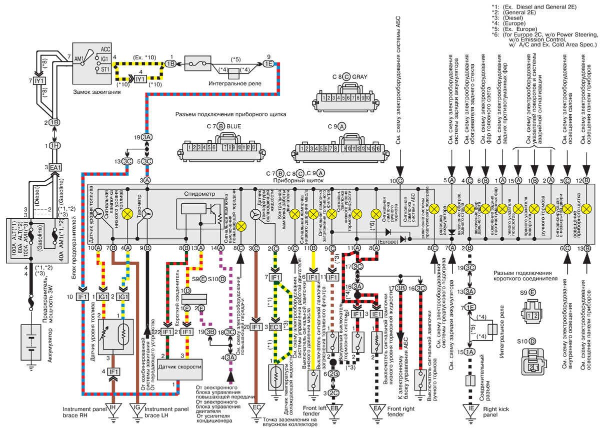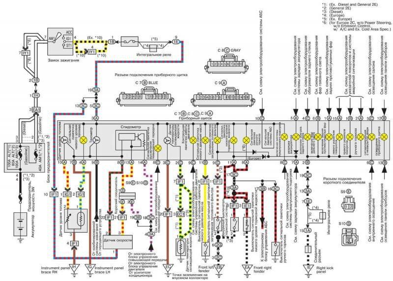 Приборы приборного щитка автомобиля Тойота Королла