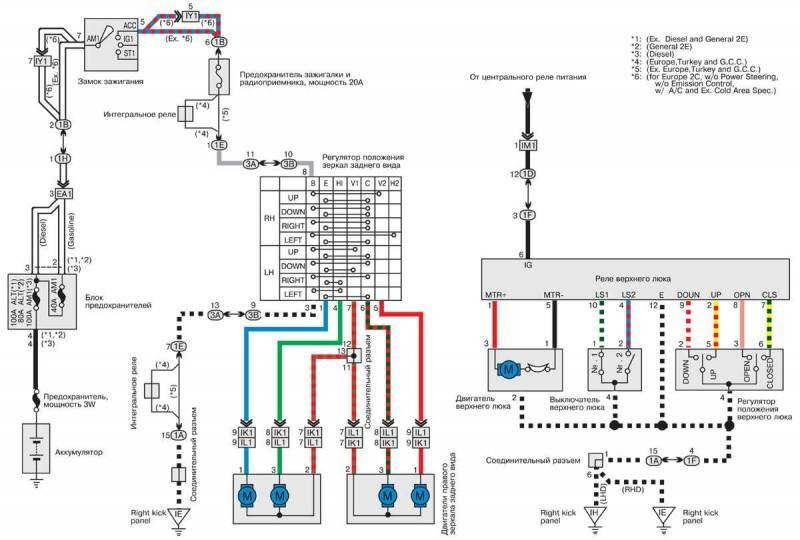 Электропривод зеркал заднего вида и верхнего люка Toyota Corolla