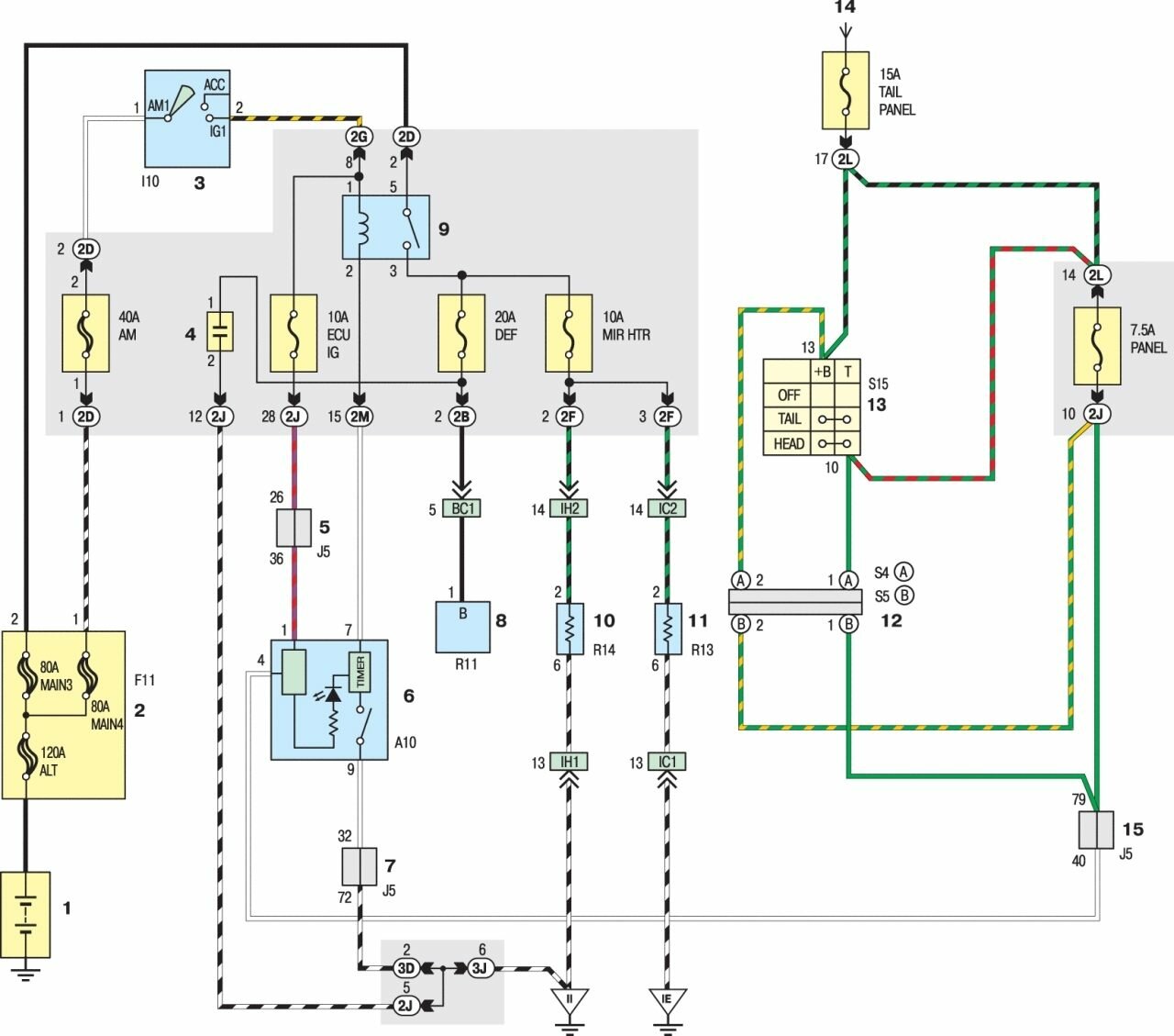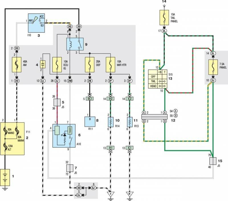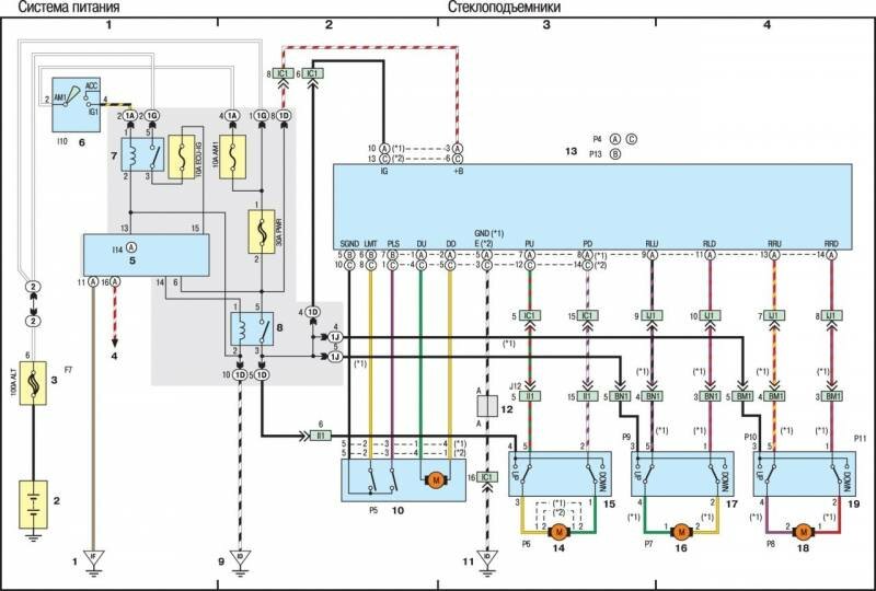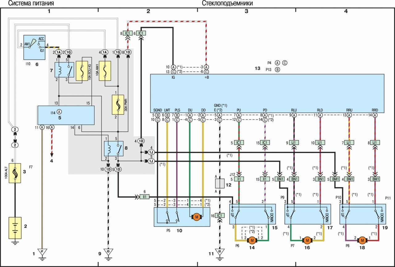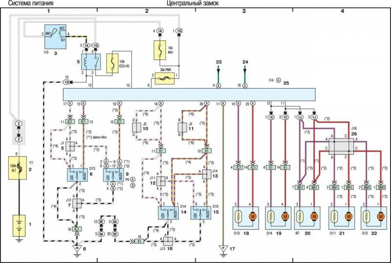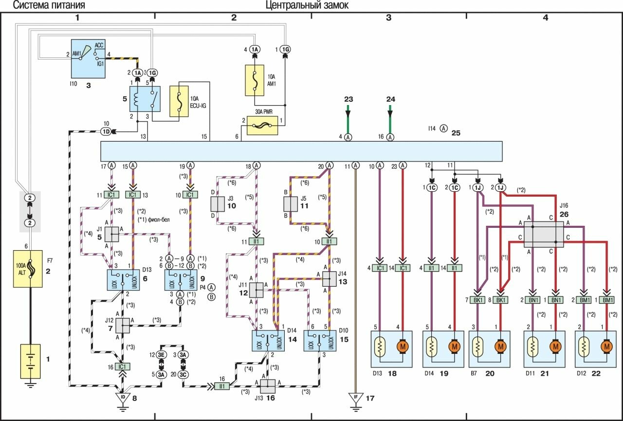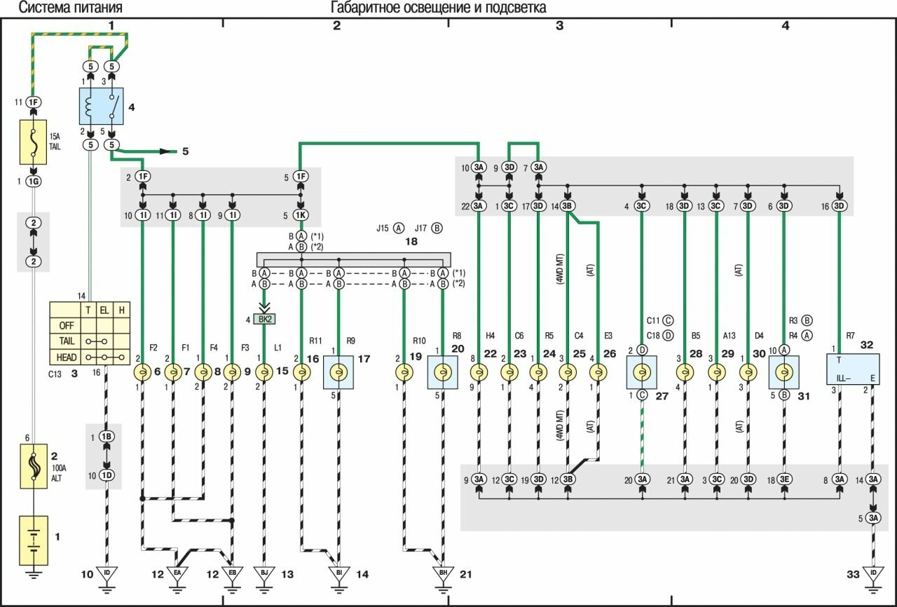 Электросхема габаритного освещения и подсветки Toyota Rav 4