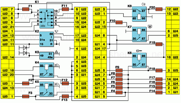 - Реле-прерыватель указателей поворота и аварийной сигнализации (в режиме аварийной сигнализации).