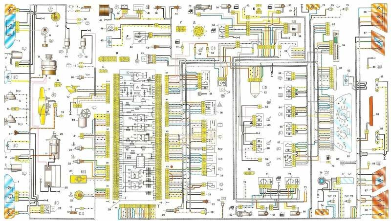 Отечественный автомобиль ВАЗ 2114 (Самара-2) построен на платформе ВАЗ 21093 и представляет собой ее улучшенную версию. В салоне появилась новая панель приборов, новый руль, регулируемая рулевая колонка, стеклоподъемники и новый отопитель. Все схемы взяты из открытых источников и предназначены для помощи в самостоятельном ремонте электрооборудования данного авто. Увеличение картинок - по клику. Блок предохранителей ВАЗ 2114 находится в салоне под приборной панелью. При проверке схемы электрической части автомобиля ВАЗ-2114 нельзя проверять исправность цепей на "искру" - это может привести к перегоранию токоведущих дорожек монтажного блока.